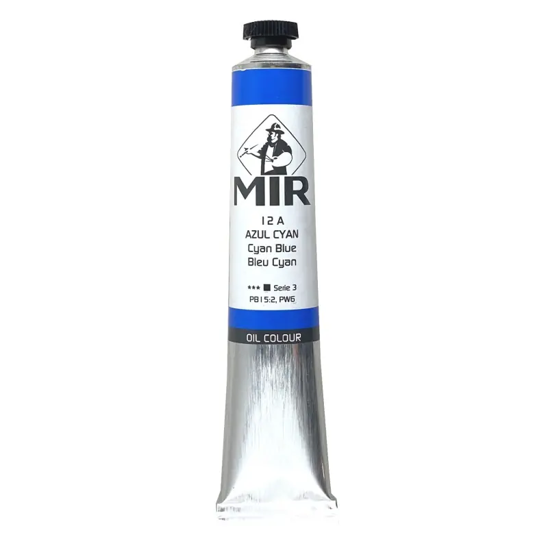 Óleo de calidad extra-fina, constituido por pigmentos específicos para bellas artes, de alta estabilidad a la luz y luminosidad. Los aceites vegetales secantes que componen el óleo Mir son escogidos para que no modifiquen el tono del pigmento, sequen uniformemente en una capa incolora, de máxima transparencia y homogeneidad.Parte fundamental de la fabricación del óleo Mir es el refinado de la pasta inicial de pigmento y aceite. Esta masa se hace pasar a través de unos molinos compuestos por tres rodillos de acero, tantas veces como sea necesario, para conseguir la perfecta dispersión de las partículas de pigmento en el medio del aceite. De esta forma el óleo obtendrá sus características de finura, cremosidad, brillo y poder tintóreo y se favorece la estabilidad en el tiempo de la pintura tanto dentro del tubo como una vez aplicada.Cada pigmento tiene un tiempo de secado natural, diferente según las condiciones de temperatura y humedad. En la fabricación del óleo Mir intentamos acercar los diferentes tiempos de secado a fin de que los colores de una obra sequen de forma pareja pero no queremos con ello comprometer la estabilidad de la pintura por lo que siempre habrán diferencias que el artista asume como consustanciales a la técnica del óleo.La gama de óleo Mir contiene básicamente colores cubrientes complementada con semi y totalmente transparentes. La cubrición es una propiedad intrínseca del pigmento en el medio aceite y el artista sabe hacer uso tanto de los pigmentos que tapan como de aquellos transparentes que le permiten sutiles efectos de veladuras.