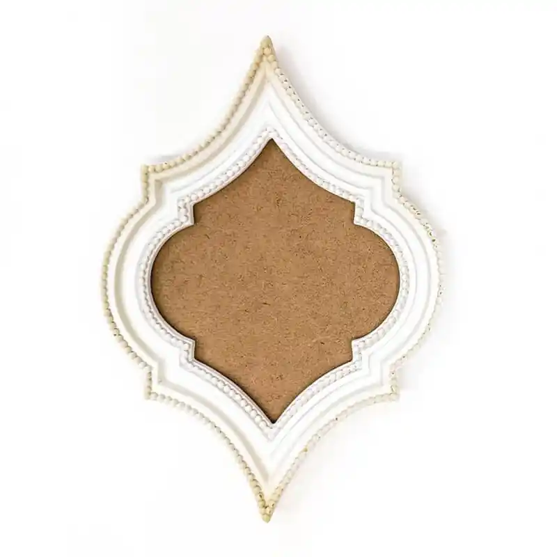 Resina de poliuretano blanco CADENCE para decorar con las pinturas y pastas.Marco de estilo arabesco más fondo de DM.Medidas interior 16×14 cm.
