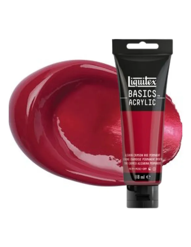 Pintura acrílica de viscosidad media, que marca los picos y pinceladas. Contiene pigmentos finos permanentes. Acabado satinado para todos los colores después del secado. Miscible con todos los otros productos acrílicos Liquitex (mediums y pinturas). Ideales para formar la rueda de color y mezcla de colores. Todos los colores llevan la etiqueta AP ACMI y se pueden utilizar de forma segura para la enseñanza. Usos y técnicas: Técnicas pastosas: por capas más gruesas que revelan las pinceladas y marcas de cuchillo o espátula. Pintura acrílica para aplicar sobre tela tradicional o panel, facilita la mezcla LIQUITEX ACRILICO BASICS 118ML TONO CARMESÍ ALIZARINA PERMANENTE