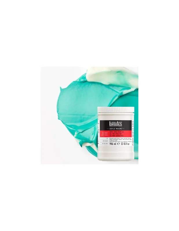 Gel superespeso mate que retiene los relieves altos y las marcas consistentes del pincel y la espátula, que casi no se allanan. Este medium logra que la pintura se pueda trabajar durante más tiempo, que la mayoria de los otros mediums en gel. Deja un acabado tránslucido y mate LIQUITEX ADITIVO 946ML GEL SUPERESPESO MATE