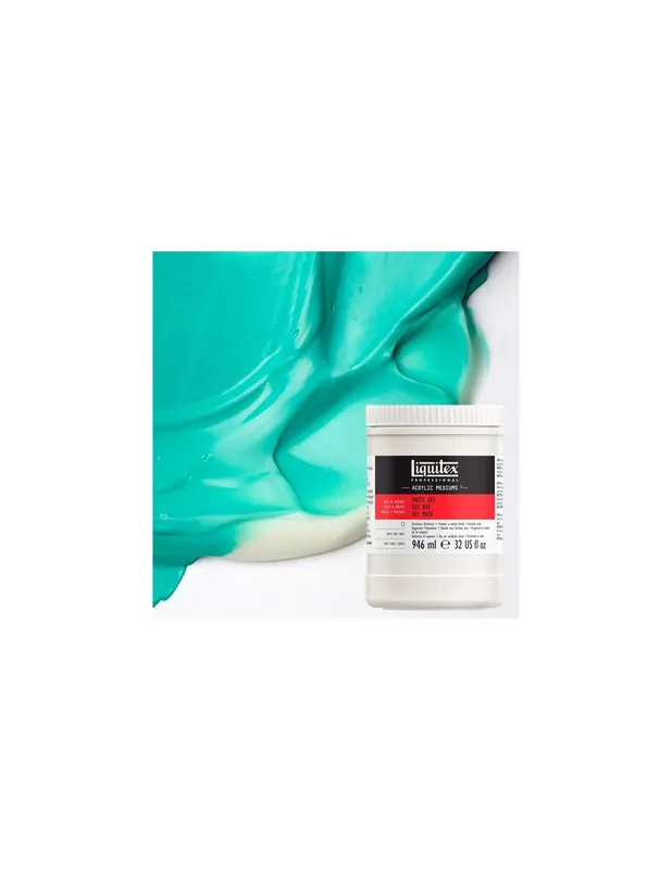 Liquitex gel mate es un medium de gel espeso que retrasa el tiempo de secado, conserva una consistencia espesa y da un brillo mate tránslucido una vez está seco. Es ideal para crear collages con objetos pesados. Se puede mezclar con gel brillante para crear un acabado satinado LIQUITEX ADITIVO 946ML MEDIUM GEL MATE