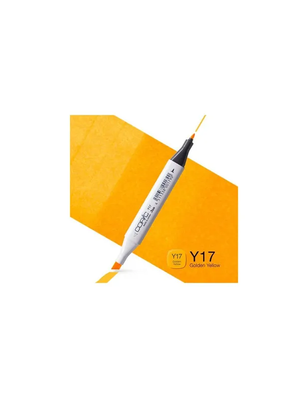 ROTULADOR COPIC CLASSIC Y17 GOLDEN YELLOWRotulador recargable de doble punta ( ancha y fina).El sistema profesional Copic Classic ha estado diseñado hasta el útimo detalle.El rotulador tiene una forma cuadrada con cantos suaves y redondeados.La codificación sistemática con letras y números a los dos lados de los tapones simplifica la identificación del color.Dispone de 7 tipos de puntas alternativas.Si buscas dónde comprar copic, no hace falta que busques más en nuestra tienda online encontrarás toda la gama de productos Copic, y al precio mínimo garantizado!