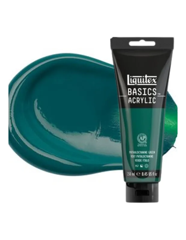 Pintura acrílica de viscosidad media, que marca los picos y pinceladas. Contiene pigmentos finos permanentes. Acabado satinado para todos los colores después del secado. Miscible con todos los otros productos acrílicos Liquitex (mediums y pinturas). Ideales para formar la rueda de color y mezcla de colores. Todos los colores llevan la etiqueta AP ACMI y se pueden utilizar de forma segura para la enseñanza. Usos y técnicas: Técnicas pastosas: por capas más gruesas que revelan las pinceladas y marcas de cuchillo o espátula. Pintura acrílica para aplicar sobre tela tradicional o panel, facilita la mezcla LIQUITEX ACRILICO BASICS 22ML VERDE FTALO