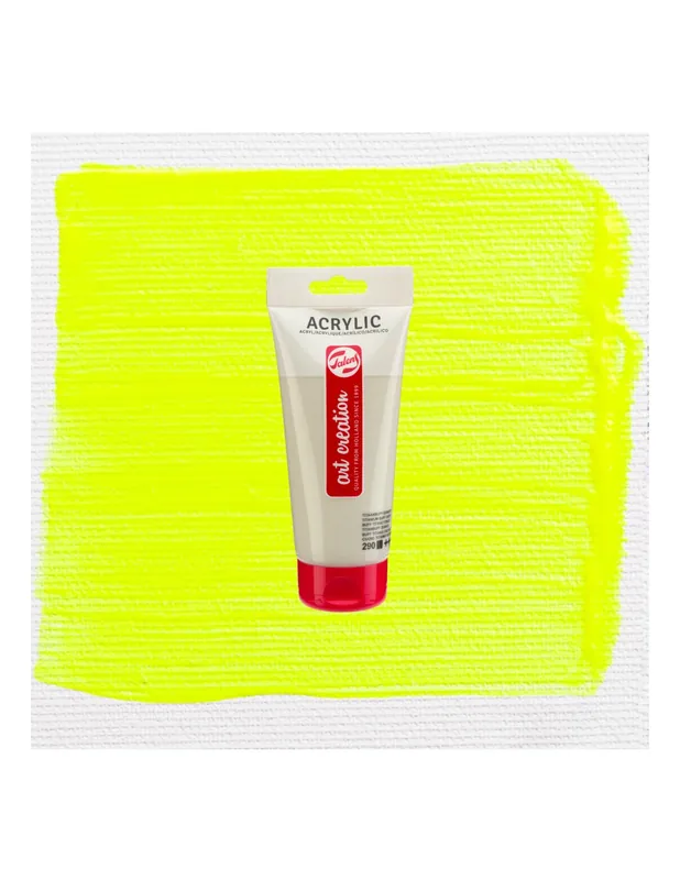 ArtCreation Essentials ofrece un acrílico estudio de calidad fiable a base del 100% de resina de acrilato. La pintura es pastosa, cuando está seca tiene un brillo sedoso y se puede sobrepintar casi de inmediato. La pintura acrílica Talens ArtCreation Essentials puede usarse directamente o diluido con agua, y una vez seco, es resistente al agua. Por su buena adherencia, con esta pintura se puede trabajar sobre cualquier sustrato que sea algo absorbente y esté libre de grasa y polvo, como el lienzo y el papel, pero también el yeso, el tablero, la madera, la piedra o el cementoACRILICO ART CREATION 200ML 256 AMARILLO REFLEX