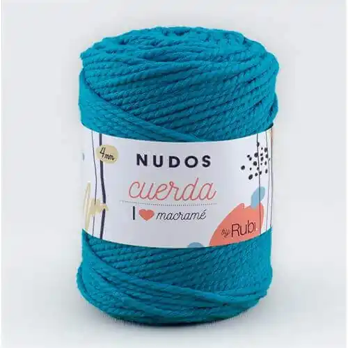 RUBI Nudos Cuerda 4 mm. 500 gr.Cuerda torcida de algodón reciclado y poliéster.¿Quieres saber más sobre Nudos Cuerda?Esta cuerda torcida de tres cabos te permitirá hacer tapices y diseños de macramé clásicos.Es un material con buena consistencia, torsión regular y que permite mantener su estado original a pesar de tener que hacer y deshacer tus labores en tu proceso creativo. Pero lo más importante es su suavidad, un regalo para tus manos.Cuenta con 12 colores, entre los que destacan tonos muy primaverales y de tendencia.¿Cómo cuidar tu labor? No se puede lavar, ni planchar.Composición: 80% Algodón reciclado 20% PoliésterPeso/longitud: 500 g., 90 m.