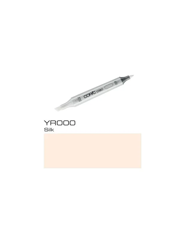 ROTULADOR COPIC CIAO YR000 SILKLos rotuladores Copic Ciao son la versión económica de los rotuladores Copic. Tienen la misma calidad, usan la misma tinta y también son recargables . Son un poco más económicos que los otros rotuladores copic ya que tienen menos capacidad de tinta.Los rotuladores Copic ciao tienen dos puntas: una biselada para colorear grandes áreas y otra de pincel muy flexible que es ideal para dibujar.La tinta es a base de alcohol, es permanente y no es tóxica. Cuando se seca está libre de ácido. Con un frasco de tinta copic de 25 ml puedes recargar hasta 16 veces un copic ciao.