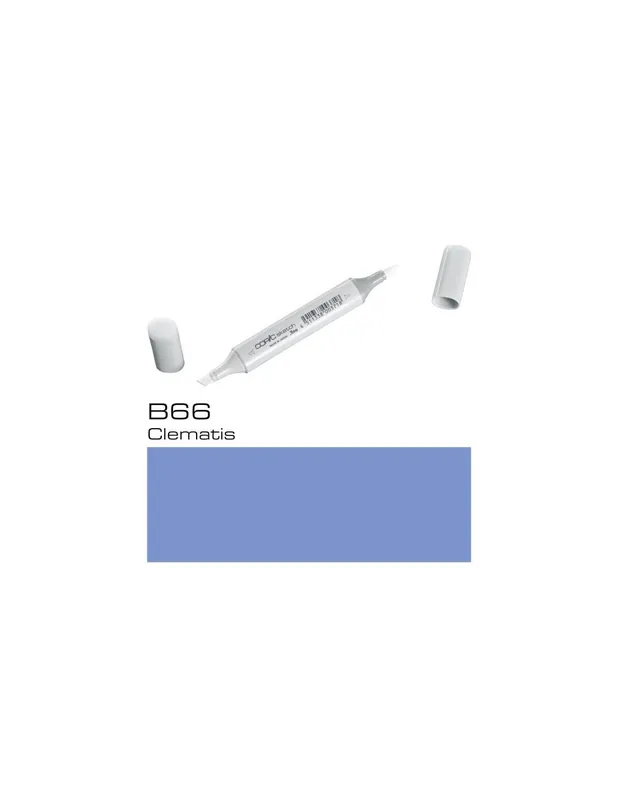 ROTULADOR COPIC SKETCH B66 ClematisCOPIC SKETCH B66 ClematisLos rotuladores copic sketch son los rotuladores preferidos de los profesionales del diseño, la ilustración, el dibujo manga y el scrap.Con sus 358 colores tienes todo un mundo de posibilidades a tu alcance, es la mayor gama de colores que existe en rotuladores, dificilmente no encontrarás aquella tonalidad que estás buscando.El rotulador copic sketch tiene dos puntas: una biselada para colorear grandes áreas y otra de pincel muy flexible ideal para dibujar. Las puntas se pueden cambiar cuando se gastan.Son rotuladores recargables, se puede volver a aprovechar la carcasa, con un frasco de tinta copic ink de 25 cc puedes rellenar hasta 12 veces un sketch.La tinta copic es a base de alcohol, es permanente y no es tóxica. Cuando se seca está libre de ácido.Los rotuladores copic sketch se pueden utilizar también con el sistema de aerografia copic.