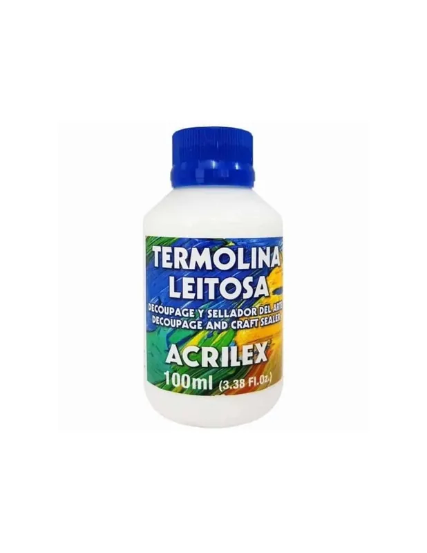 Termolina Leitosa acrilex 100Mlsellador e impermeabilizante para tejidos y oros materiales porososideal para proteger del deshilachado en costuras y recortes, también sirve para trabajos de scrap o de decoupagelista para su uso, base al agua.