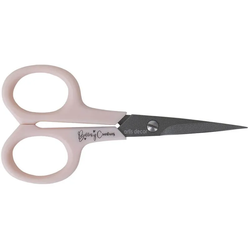TIJERAS PRECISIÓN 4.25'' ARTIS DECOR BY JOHANNA RIVEROTijeras de 4,25'' (10.8 cm.), con tacto suave y hojas de acero quirurgico japonés y antiadherente. Está diseñada para máxima comodidad, precisión y fuerza.Marca Artis Decor con Johanna Rivero de Bellas y Creativas.Mango color rosa pastel y acero gris.