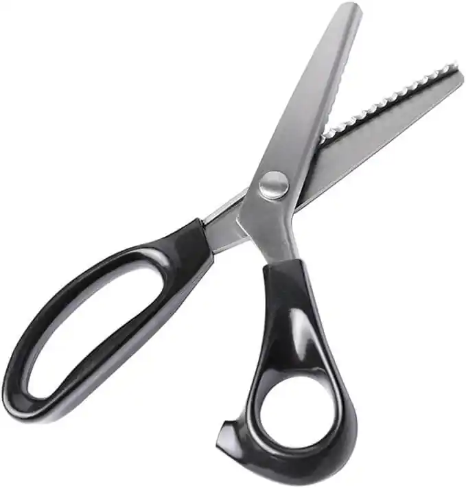 Tijeras dentadas diseñadas para cortar papel, telas , forros, etc. Cuchillas de acero inoxidable endurecido.Mango de plástico.Marca: JYC CREATIVE, España