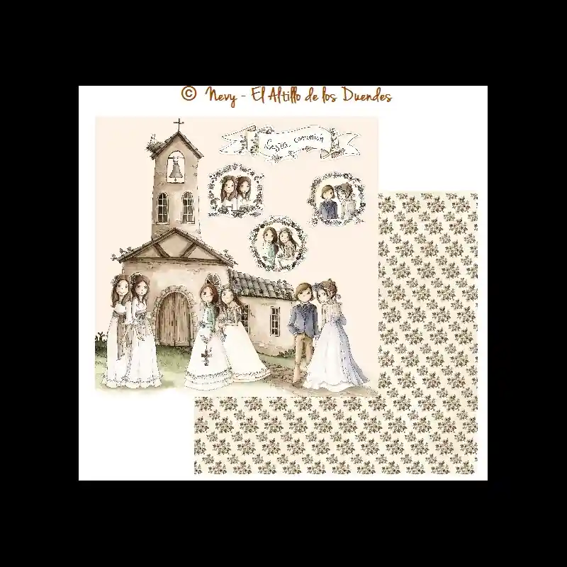 PAPEL SCRAP SUELTO de EL ALTILLO DE LOS DUENDES. Colección Ellas celebran su comunión. Papel 3/6.Doble cara30x30 cmEl Altillo de los Duendes190 gr.