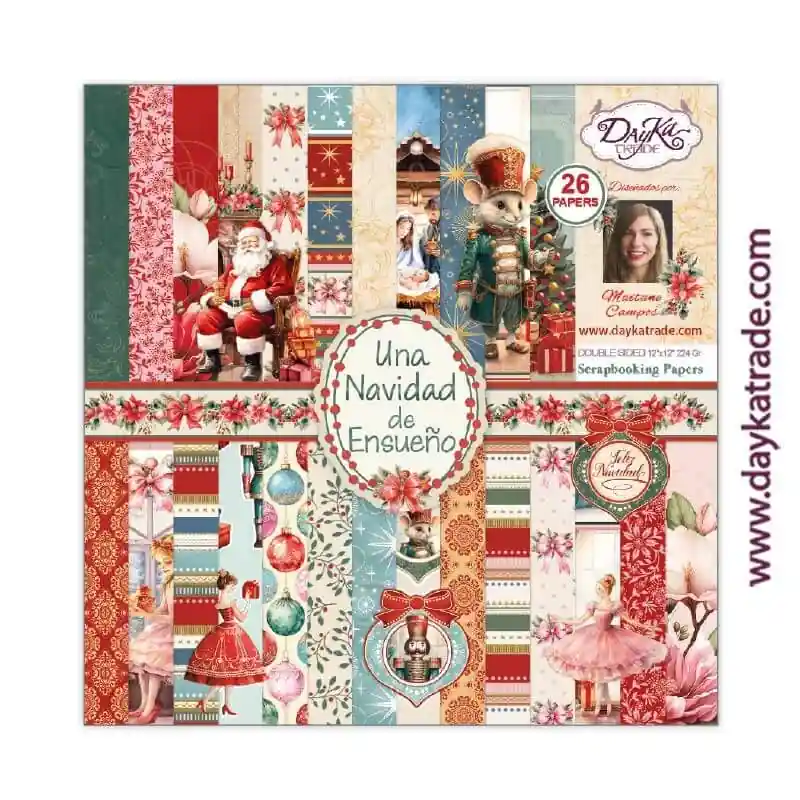 Kit de papeles para Scrapbooking &lNavidad de ensueño&r de Dayka.24 papeles de 12×12 pulgadas (20×20 cm aprox.).De 170 gramos a dos caras.Diseñados y producidos en España.