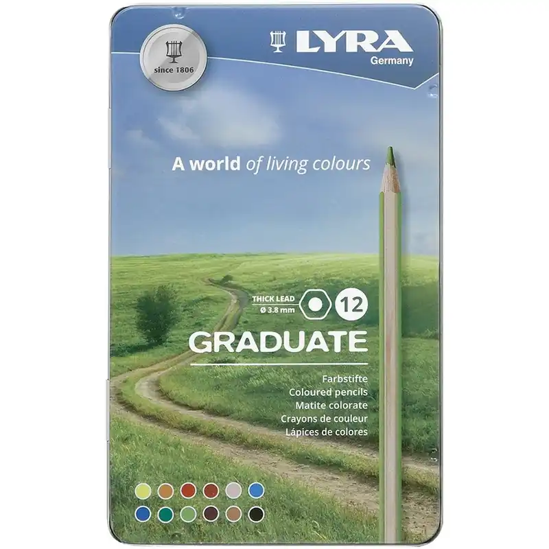 12 Lápices de colores de alta calidad.Colores intensos y cubrientes.Mina súper resistente de 3.8mm, de larga duración y fácil de afilar.Realizados en madera de cedro con certificación PEFC.