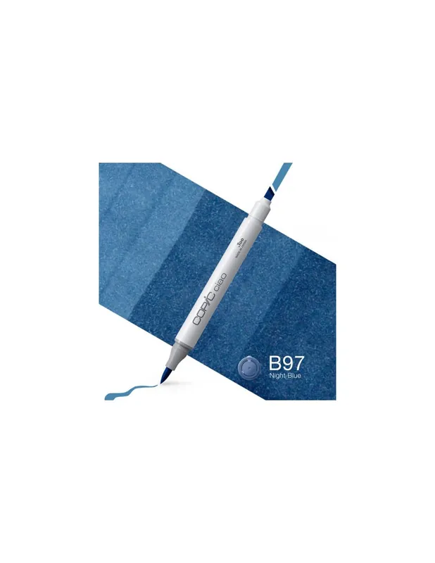 ROTULADOR COPIC CIAO B97 NIGHT BLUELos rotuladores Copic Ciao son la versión económica de los rotuladores Copic. Tienen la misma calidad, usan la misma tinta y también son recargables . Son un poco más económicos que los otros rotuladores copic ya que tienen menos capacidad de tinta.Los rotuladores Copic ciao tienen dos puntas: una biselada para colorear grandes áreas y otra de pincel muy flexible que es ideal para dibujar.La tinta es a base de alcohol, es permanente y no es tóxica. Cuando se seca está libre de ácido. Con un frasco de tinta copic de 25 ml puedes recargar hasta 16 veces un copic ciao.