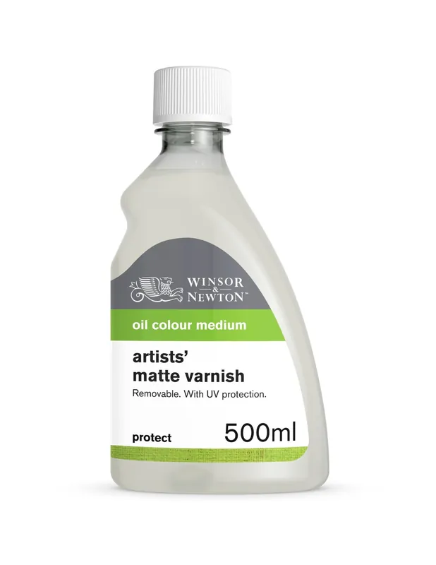 Barniz líquido transparente que seca dejando una película mate que no amarillea. Se puede mezclar con barniz mate original para cuadros, para producir un medio mate. No aplicar antes de 8-12 meses, la pintura tiene que estar completamente seca.