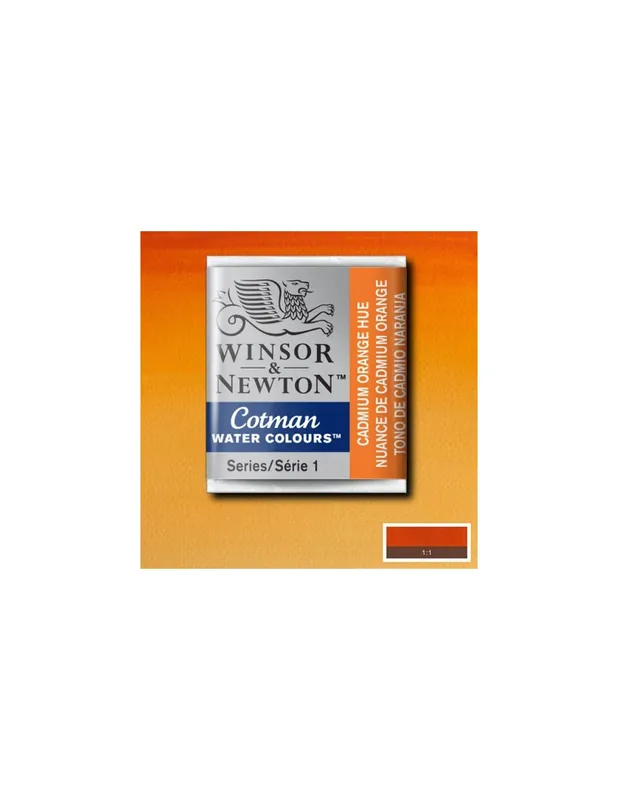 Viveza, transparencia y pureza de color. Gama de colores complementaria de la serie Artists’ de Winsor & Newton, caracterizada por una concentración menor de pigmento y la sustitución de los pigmentos más caros por otros más económicos. Así, W&N consigue a un precio único una acuarela de excelente poder colorante y optima transparencia a precio muy asequible. WINSOR & NEWTON ACUARELA COTMAN 1/2 GODET TONO AMARILLO CADMIO NARAN