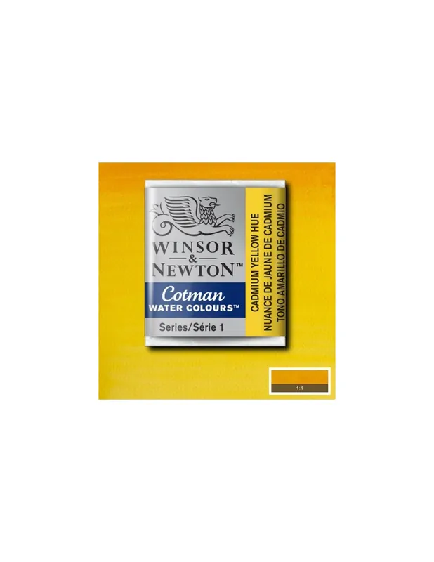 Viveza, transparencia y pureza de color. Gama de colores complementaria de la serie Artists’ de Winsor & Newton, caracterizada por una concentración menor de pigmento y la sustitución de los pigmentos más caros por otros más económicos. Así, W&N consigue a un precio único una acuarela de excelente poder colorante y optima transparencia a precio muy asequible. WINSOR & NEWTON ACUARELA COTMAN 1/2 GODET TONO AMARILLO DE CADMIO