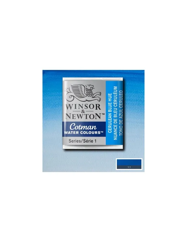 Viveza, transparencia y pureza de color. Gama de colores complementaria de la serie Artists’ de Winsor & Newton, caracterizada por una concentración menor de pigmento y la sustitución de los pigmentos más caros por otros más económicos. Así, W&N consigue a un precio único una acuarela de excelente poder colorante y optima transparencia a precio muy asequible. WINSOR & NEWTON ACUARELA COTMAN 1/2 GODET TONO AZUL CERÚLEO