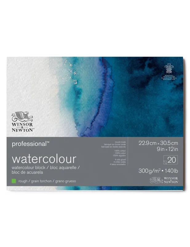 Papel para acuarela profesional 100% algodón WINSOR & NEWTON PAPEL ACUARELA PROFESIONAL BLOC ENCOLADO 4 LADOS GRANO SATINADO 300G 22,9X30,5CM 20 HOJAS