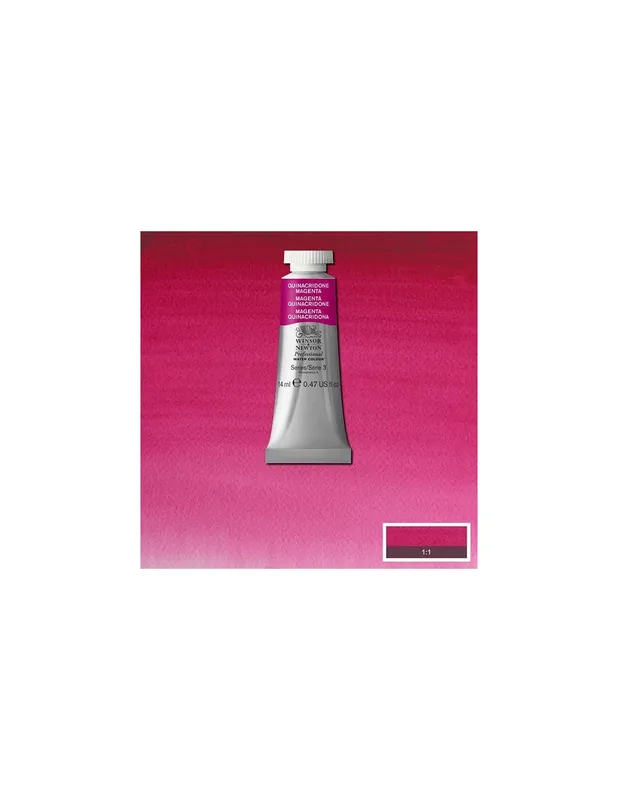 Se fabrican los colores con los pigmentos más finos y prestigiosos con alta concentración. Sutilmente mezclados con el aglutinante con goma arábica, ofrecen a los colores brillo, transparencia y resistencia perfecta a la luz. Cada matiz se fabrica siguiendo una receta precisa para conseguir la mejor calidad pictórica.La intensidad y la transparencia de las acuarelas superfinas de Winsor & Newton permiten dar realce a los matices y al grano del papel acuarela.Más de 170 años después, la acuarela húmeda original de Winsor & Newton? sigue formulándose y fabricándose de acuerdo con los principios fundadores: crear una gama de acuarelas sin igual que ofrezca a los artistas la selección más amplia y equilibrada de pigmentos con la mayor permanencia posible. Observando estrictamente dichos principios, logramos una viveza, transparencia y pureza de color que ninguna otra acuarela iguala. WINSOR & NEWTON TUBO 14ML MAGENTA QUINACRIDONA